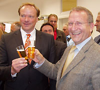 Horst Engel informierte sich über die Sorgen und Nöte der GalaBau-Betriebe – hier mit Frank Demel (r.), mit seinem Betrieb in Pulheim-Brauweiler. Frank Demel ist Vorsitzender der GalaBau-Betriebe im Bezirk Köln. Den GalaBau-Betrieben machen insbesondere die sogenannten 1 Euro-Jobs Sorgen, da der Einsatz solcher Kräfte auch im Garten- und Landschaftsbau beabsichtigt ist.