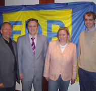 Die vom innenpolitischen Sprecher Horst Engel MdL/NRW initiierte bundesweite Besprechungsrunde der innenpolitischen Sprecher der FDP (FDP-Innenrunde) tagte in Magdeburg. Erstmals seit vielen Jahren wieder mit einem FDP-Innenminister, Dr. Ingo Wolf MdL/NRW, hier neben Jörg-Uwe Haan MdL/Hessen, Vorsitzender der bundesweiten FDP-Fraktionsvorsitzendenkonferenz und Giesela Piltz MdB/NRW.
