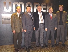 Das Bild zeigt v.l.n.r.: Herr Schiffer (Sammler), Karl-Peter Brendel MdL, Dieter-Julius Cronenberg, Vizepräsident des Deutschen Bundestages a.D., Horst Engel MdL und Herr Luther von der Geschäftsleitung UMAREX/Walther.