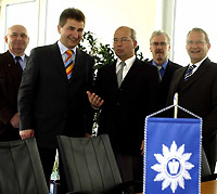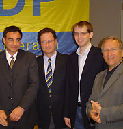 Die vom innenpolitischen Sprecher Horst Engel MdL/NRW initiierte bundesweite Besprechungsrunde der innenpolitischen Sprecher der FDP (FDP-Innenrunde) tagte in Magdeburg. Erstmals seit vielen Jahren wieder mit einem FDP-Innenminister, Dr. Ingo Wolf MdL/NRW, hier neben Jörg-Uwe Haan MdL/Hessen, Vorsitzender der bundesweiten FDP-Fraktionsvorsitzendenkonferenz und Giesela Piltz MdB/NRW.