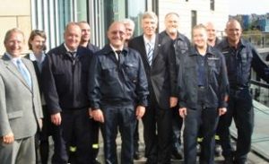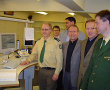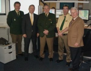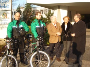 Polizeipräsident Friedrichs zeigte zu Beginn die neue Kälteschutzkleidung der Fahrradstreifen, die den Dienst auch bei Minusgraden möglich macht. Nach einem ausführlichen Meinungsaustausch stellte man sich in der modern ausgestatteten Einsatzleitstelle dem Fotografen.