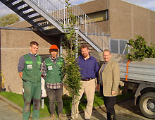 Horst Engel informierte sich über die Sorgen und Nöte der GalaBau-Betriebe – hier mit Frank Demel (r.), mit seinem Betrieb in Pulheim-Brauweiler. Frank Demel ist Vorsitzender der GalaBau-Betriebe im Bezirk Köln. Den GalaBau-Betrieben machen insbesondere die sogenannten 1 Euro-Jobs Sorgen, da der Einsatz solcher Kräfte auch im Garten- und Landschaftsbau beabsichtigt ist.